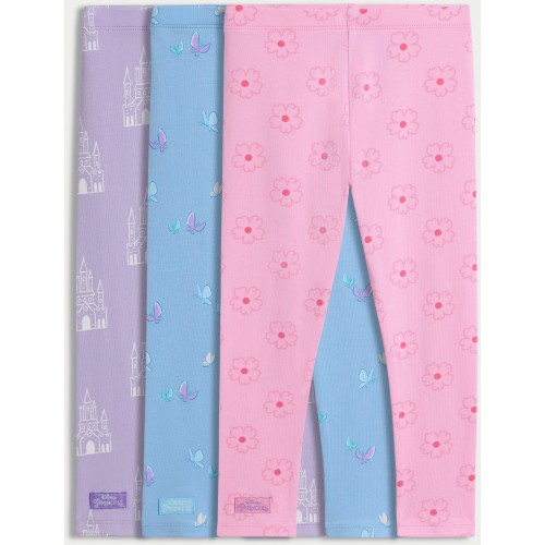 Disney Princess 3-Pack Cotton Rich Printed Leggings in Multi Pink