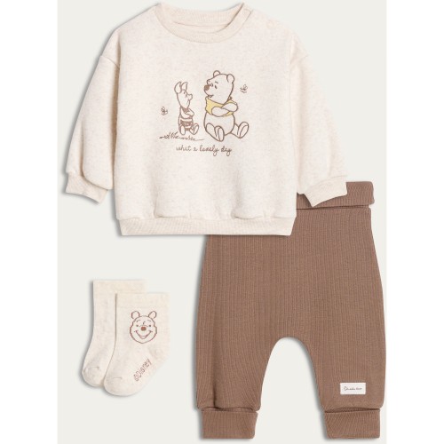 Disney Winnie the Pooh 3-Pack Sweatshirt Joggers and Socks Set in Brown