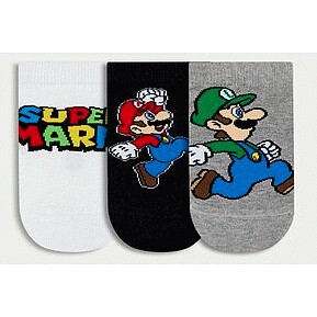 Super Mario 3-Pack Cotton Rich Trainer Socks in Multi