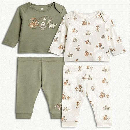 Disney Toy Story 2-Pack Pure Cotton Long Sleeved Sleepsuits in Green