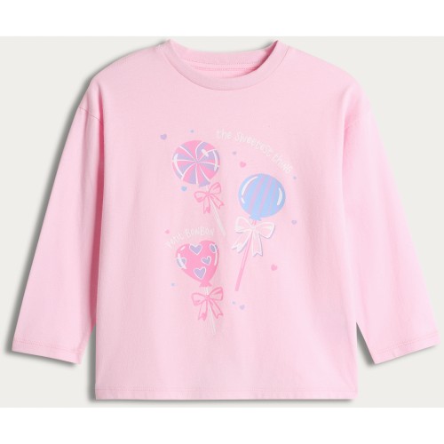 F&F Girls Pure Cotton Lollipop Print Long Sleeved Top in Pink