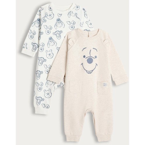 Disney Winnie the Pooh 2-Pack Cotton Rich Sleepsuits in Neutral