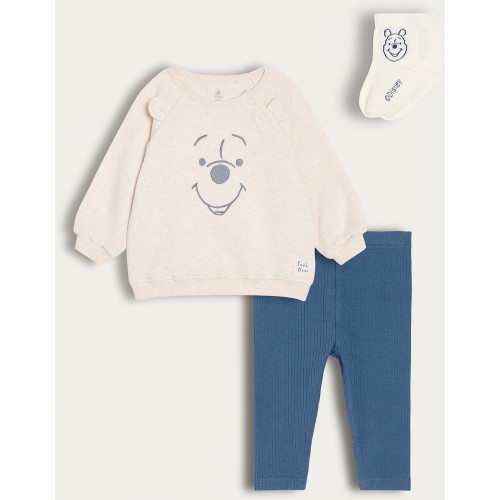 Disney Winnie the Pooh 3-Piece Cotton Blend Sweatshirt Leggings and Socks Set in Multi Blue
