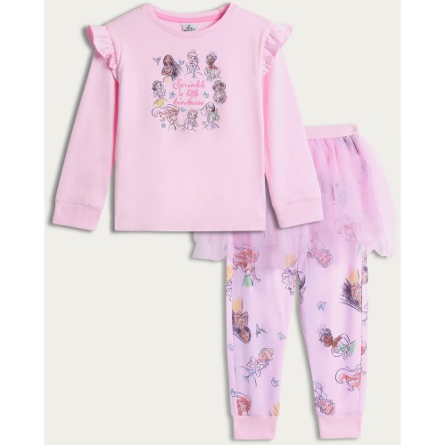 Disney Princess Frill Sleeve Pyjama Set in Pink
