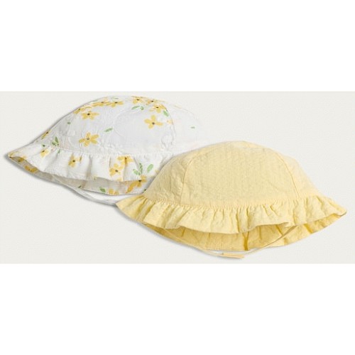 Baby 2-Pack Pure Cotton Textured Bucket Hats in Yellow