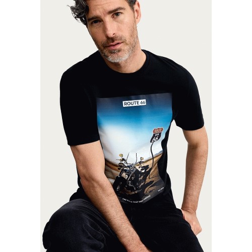 Pure Cotton Chevron Pattern T-Shirt in Black
