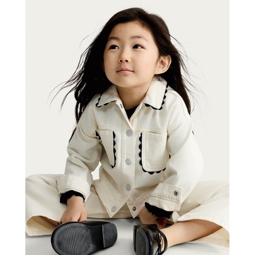 F&F Girls Pure Cotton Scallop Trim Jacket in Cream