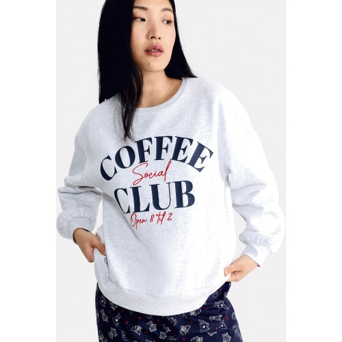 Pure Cotton Coffee Club Pyjama Set in Multi Blue