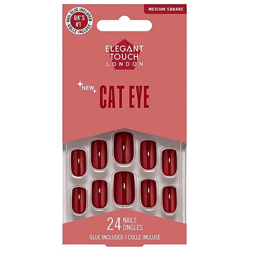 Gel Finish Cat Eye Opaline False Nails with Glue