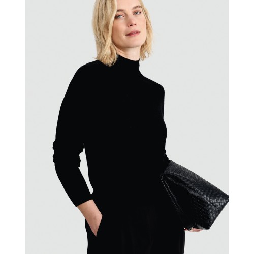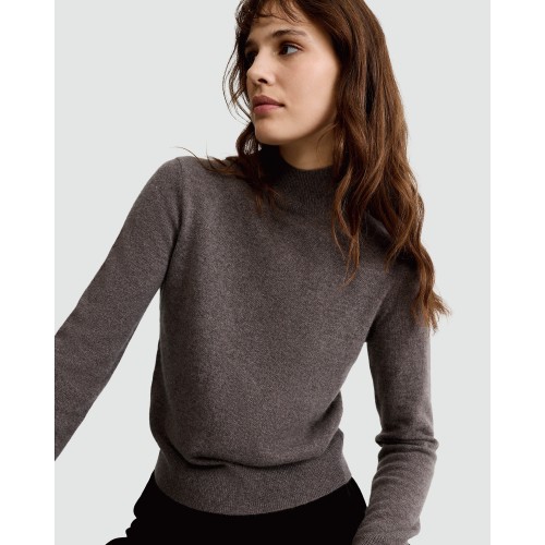Premium Ribbed High Neck Jumper With Cashmere in Brown