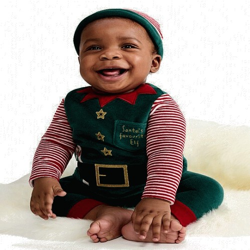 3-Piece Velour Santa's Favourite Elf Outfit in Green