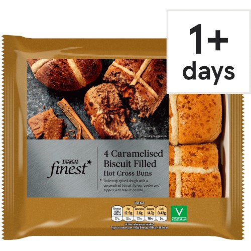 4 Caramelised Biscuit Hot Cross Buns
