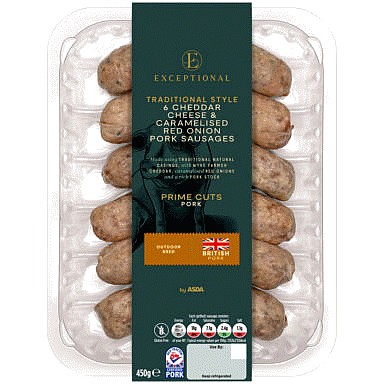 Exceptional by 6 Traditional Style Cheddar Cheese & Caramelised Red Onion Pork Sausages