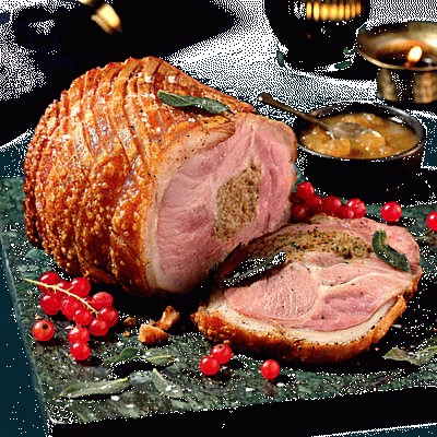 Perfectly seasoned pork with bramley apples and a smoky, crunchy topping