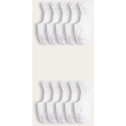 10-Pack Cotton Rich Invisible Trainer Socks in White