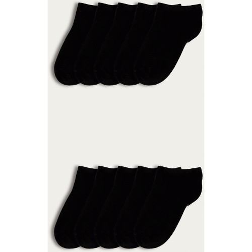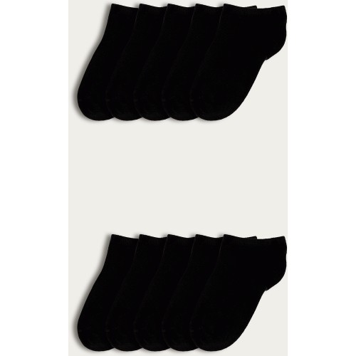 Boys 10-Pack Cotton Rich Trainer Socks in Black