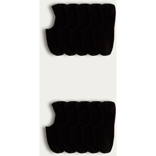 10-Pack Cotton Rich Invisible Trainer Socks in Black