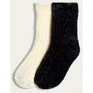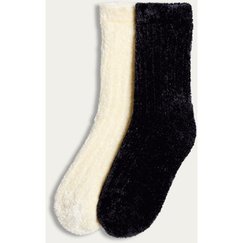 Girls 2-Pack Textured Cosy Socks in Navy Multi