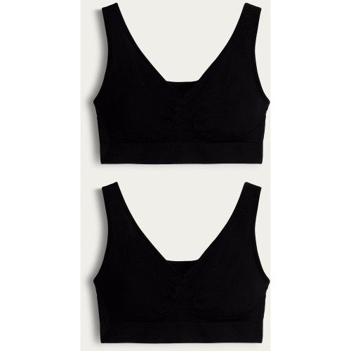2-Pack Contour Seamfree Non Wired Crop Tops in Black