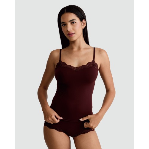 2-Pack Contour Lace Trim Camisoles in Burgundy