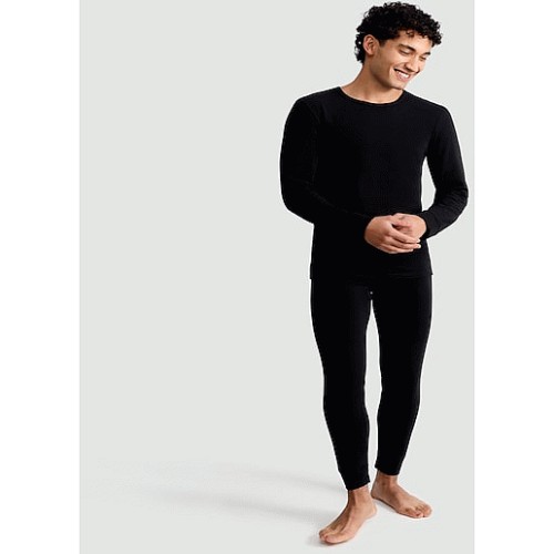 2-Pack Cotton Blend Ribbed Thermal Long Johns in Black