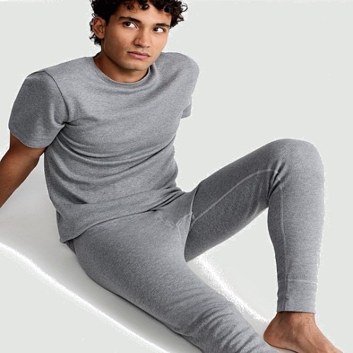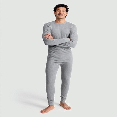 Cotton Blend Ribbed Thermal Long Johns in Grey