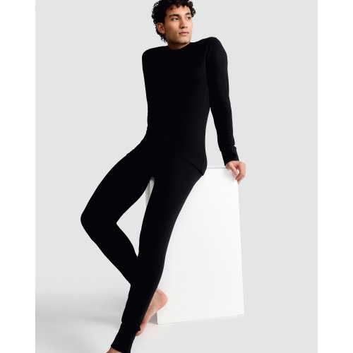 WARMPLUS Medium Warmth Ribbed Thermal Long Johns in Black