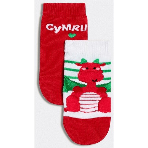Baby 2-Pack Cotton Rich Welsh Dragon Socks in Multi
