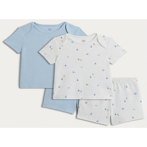 2-Pack Cotton Rich Towelling Rompers in Blue