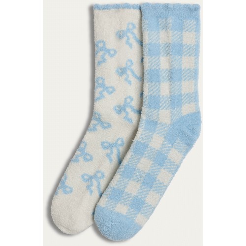 2-Pack Textured Bow and Gingham Cosy Socks in Blue