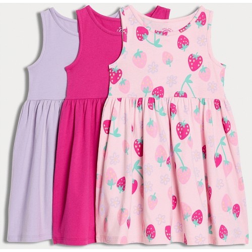 F&F Girls 3-Pack Pure Cotton Sleeveless Dresses in Multi Pink