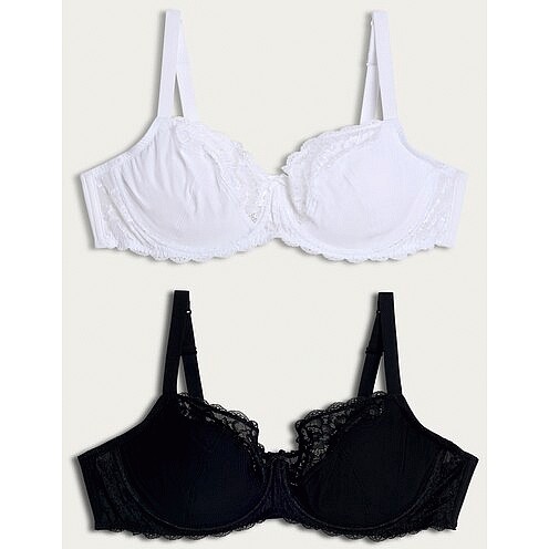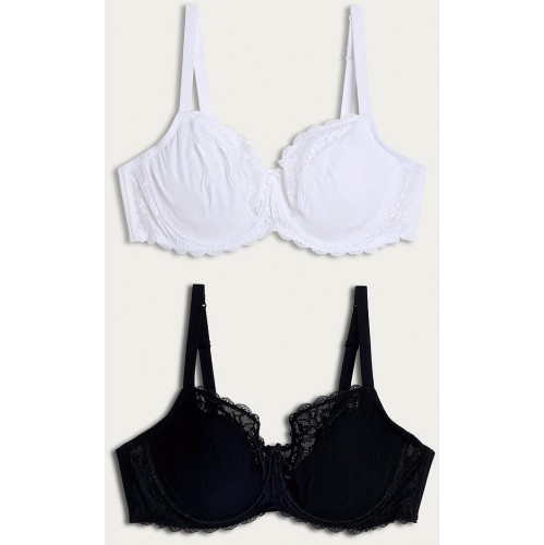 2-Pack Fuller Bust Lace Trim Wired Bras in Multi Black White