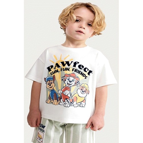 Paw Patrol 2-Piece T-Shirt and Striped Shorts Set in Cream