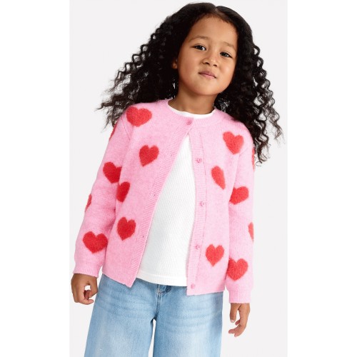 F&F Girls Textured Heart Pattern Cardigan in Pink