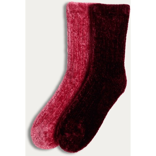2-Pack Heart Patterned Cosy Socks in Burgundy