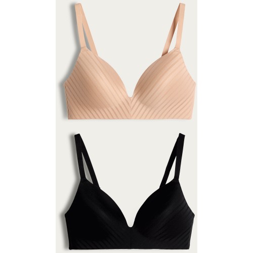 2-Pack Non Wired Striped Padded Bra in Multi Black White
