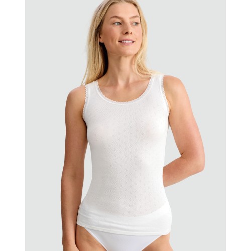 2-Pack Pointelle Lace Trim Thermal Vests in Black