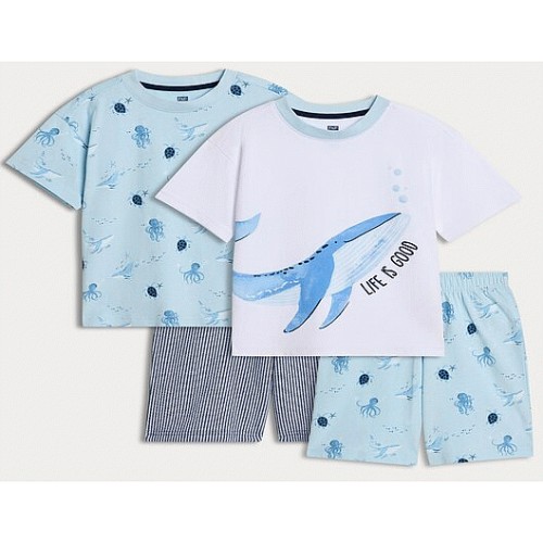 2-Pack Pure Cotton Whale Print Pyjama Sets in Blue