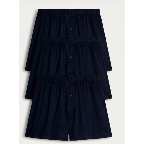 3-Pack Pure Cotton Woven Boxers in Navy