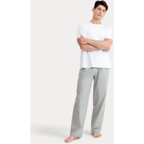 Pure Cotton Stripe Print Pyjama Bottoms in Khaki