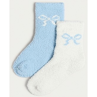Girls 2-Pack Bow Detail Cosy Socks in Blue