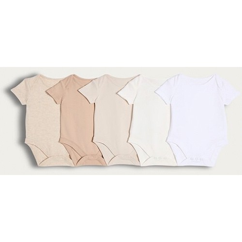 5-Pack Pure Cotton Short Sleeved Bodysuits in Neutral