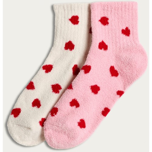 2-Pack Heart Patterned Cosy Socks in Burgundy