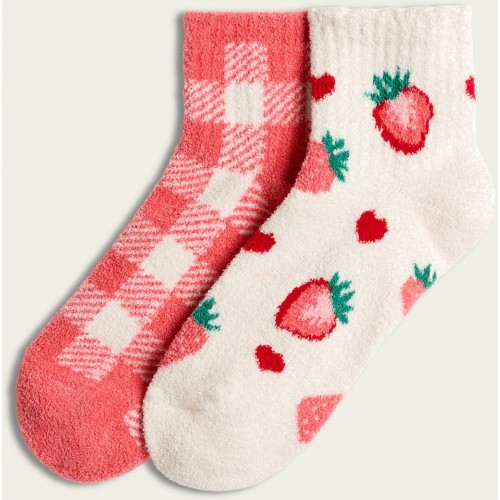 2-Pack Strawberry and Gingham Cosy Socks in Cream