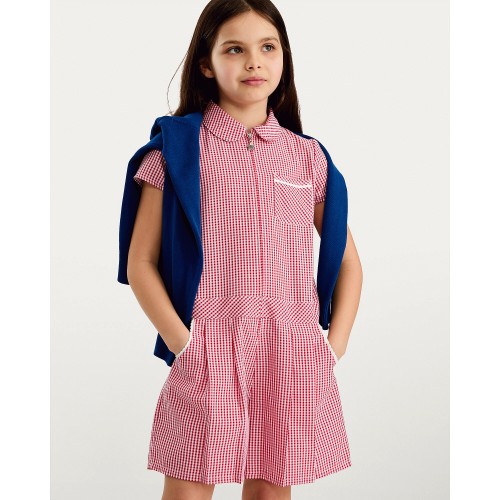 F&F School Girls 2-Pack Gingham Playsuit in Red