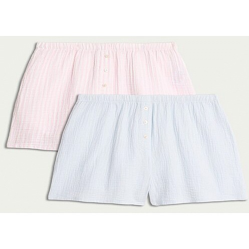 2-Pack Pure Cotton Button Detail Pyjama Shorts in Multi
