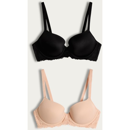 2-Pack Lace Trim Underwired T-Shirt Bra in Multi