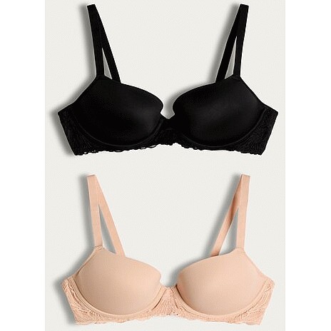 2-Pack Lace Trim Underwired T-Shirt Bra in Multi