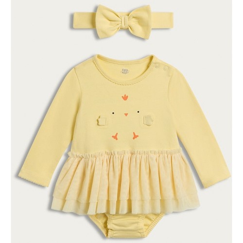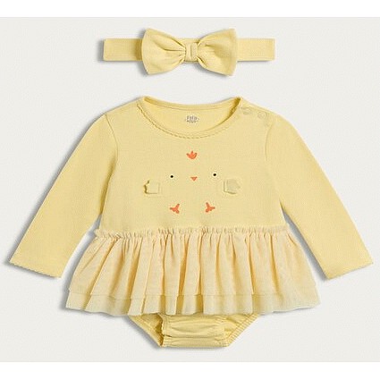 2-Piece Pure Cotton Bodysuit and Headband Set in Yellow