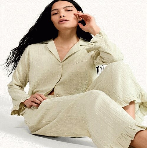 The F&F Edit Pure Cotton Textured Frill Trim Pyjama Set in Green